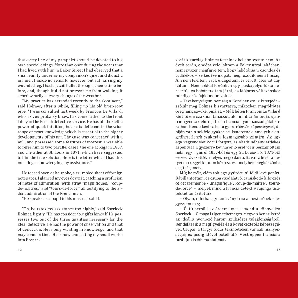 A klasszikus krimik e remekét a TINTA Könyvkiadó most magyar–angol kétnyelvű kiadásban bocsátja az olvasók rendelkezésére. A nyelvtanulók szempontjait szem előtt tartva a minél kényelmesebb használhatóságra törekedtünk a kötet összeállításakor, ezért egymás mellé igazítva található minden oldalpáron az angol szöveg a bal, a magyar pedig a jobb oldalon. A csavaros történetet így párhuzamosan követheti végig az olvasó, miközben kényelmesen és szórakozva fejlesztheti angoltudását.