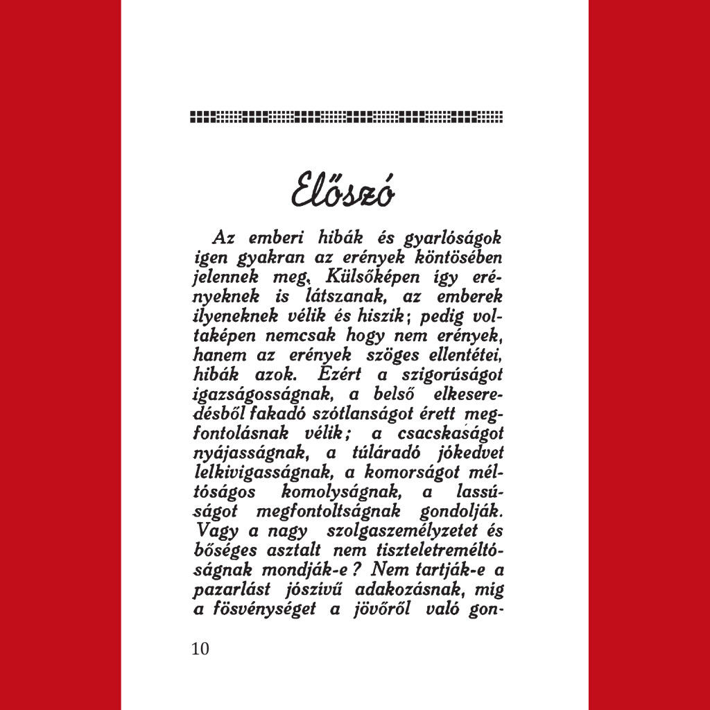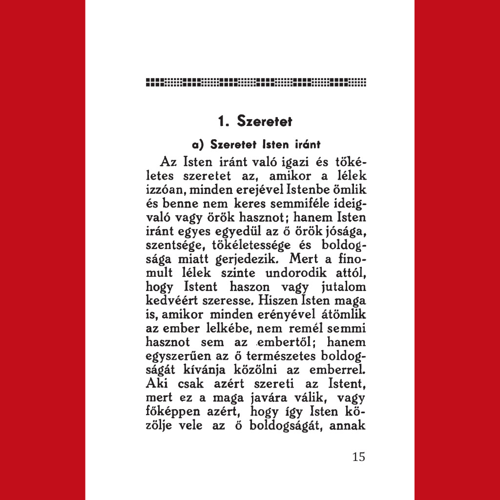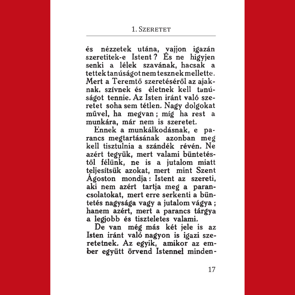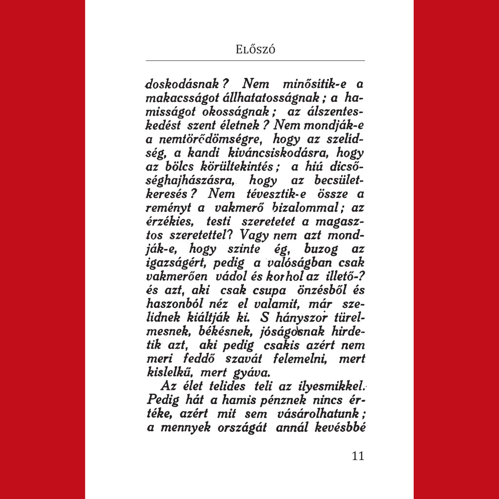 Jelen művében különválasztja az igazi erényt a látszólagostól. Buzdít, hogy fellelkesülve sajátítsuk is el az igaziakat. Összesen 42 nemes tulajdonságról szól, többek között az alábbi erényeket tárgyalja: alázatosság, békesség, béketűrés, bizalom, bőkezűség, bűnbánat, egyszerűség, engedelmesség, erősség, hit, igazságosság, irgalmasság, magányosság, mértékletesség, okosság, remény, szabadság, szegénység, szelídség, szeretet, tisztaság, vallásosság.