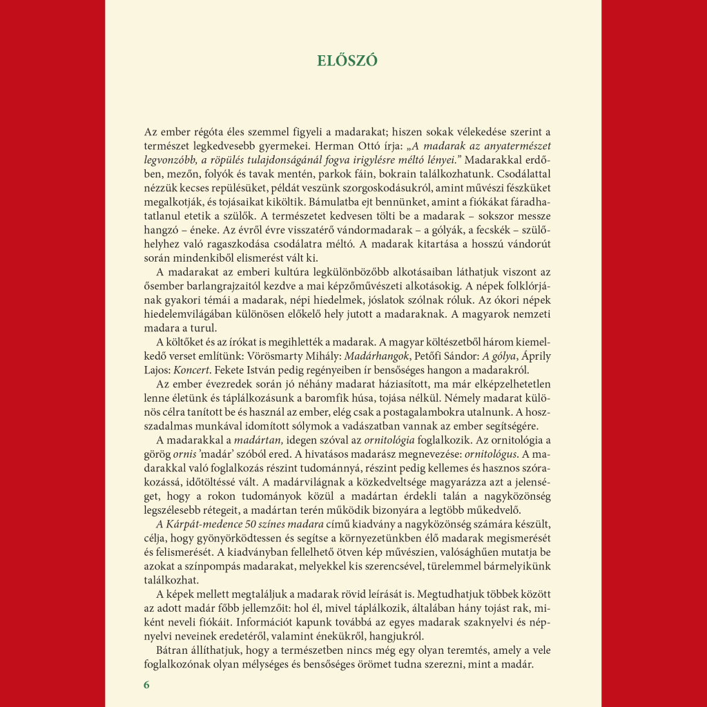 Bátran állíthatjuk, hogy a természetben nincs még egy olyan teremtés, amely a vele foglalkozónak olyan mélységes és bensőséges örömet tudna szerezni, mint a madár. Ezért is ajánljuk jó szívvel kiadványunkat minden madárkedvelőnek.