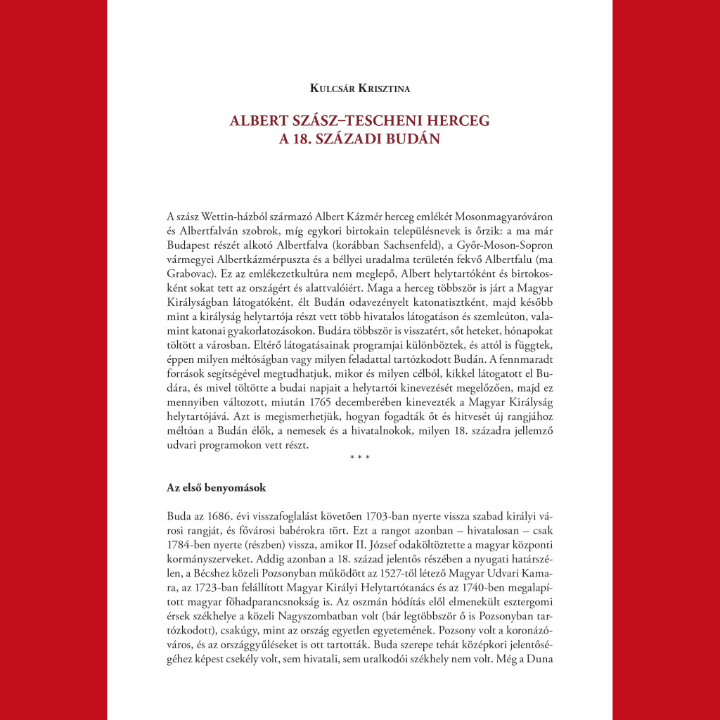 Kulcsár Krisztina: Albert szász–tescheni herceg a 18. századi Budán / 8